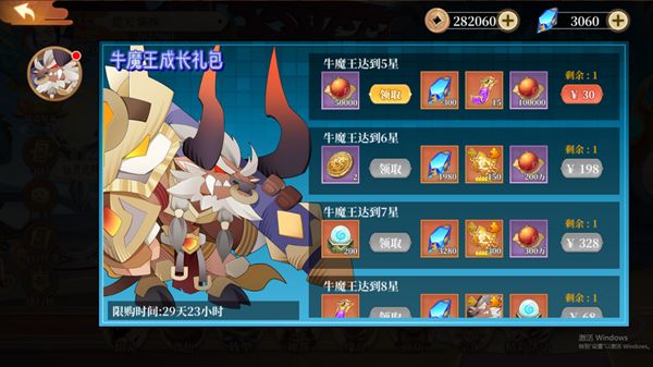 一套成熟的阵容坦克都是非常重要的,前排坦不住后排也打不出输出。首充礼包里的牛魔王就是前期比较容易能获取到的最强坦克了,可以用很长一段时间。
