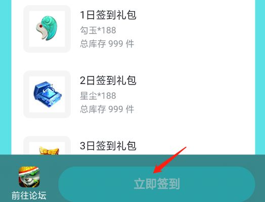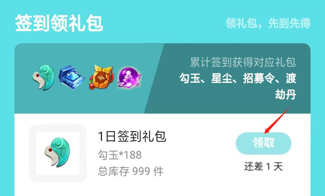 ☆第二步:点击签到后领取对应天数礼包,点击【领取】