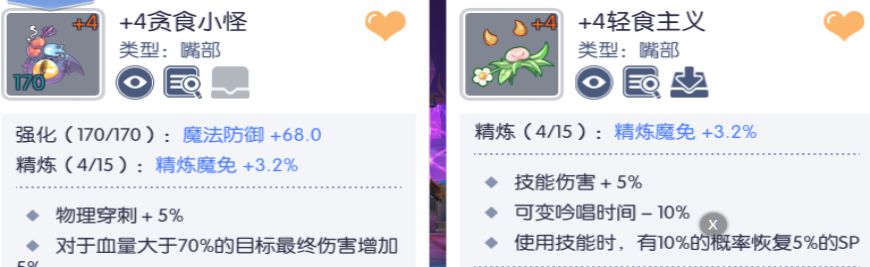 嘴部:小怪嘴,技能嘴二选一。50%血以上小怪伤害高。以下技能嘴高。