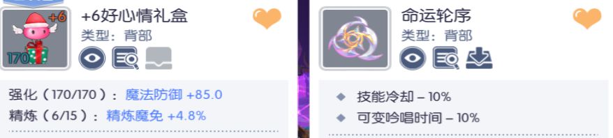 背部:好心情常驻,CD背用于在备战之前切换上BUFF,降低技能CD。懒人可以当我没说。女神伤害大于好心情,但是牺牲生存能力。