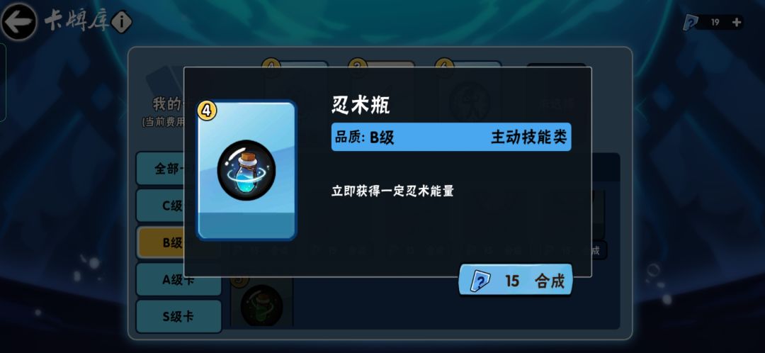 长话短说,我推荐的卡组带的卡牌为鬼魂之躯、雷盾、小忍术瓶、大忍术瓶。(ps小忍术瓶在新活动卡牌上并没有说明具体回复多少能量,我参考的是三三卡牌的描述为30%,具体活动小忍术瓶的回复量以实际为准🌚)