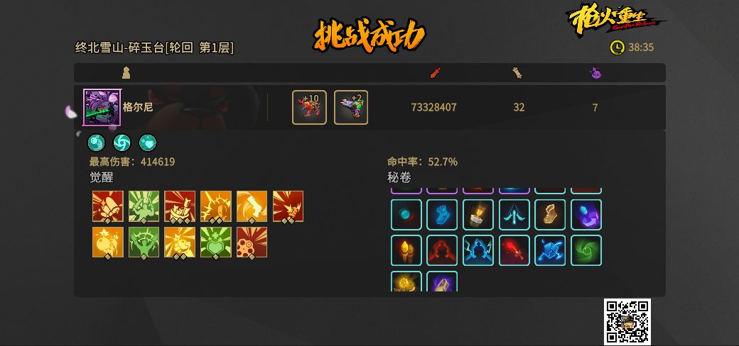 最终BOSS↓(比较胡的狗子,高级弹库对手雷流狗子没有帮助。本次没有特意刷条目,导致灵佑和觉醒没完全成型,但是伤害完全够,即使是轮回7也没啥问题)