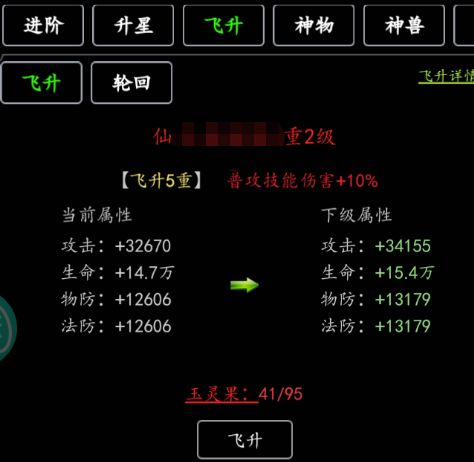 飞升方面,能氪尽量多氪,这个是真正打伤害的,属性上 体现不出来,却可以低战打高战。这个加成适用于任何地方,比如推图主宰,巅峰仙路