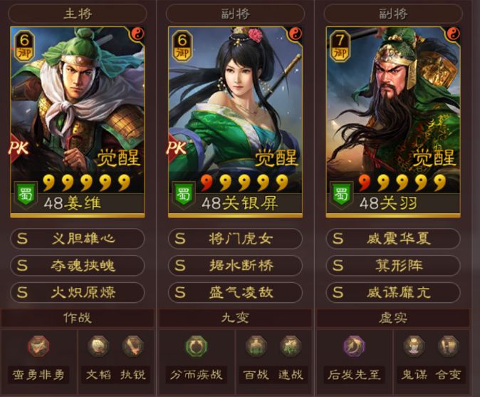 总结:这套蜀骑阵容可以说是比较全面的队伍,尤其是群雄剧本里可以压制吴盾、虎臣弓、三势吕和渊骑阵容,可以说都是相对主流的队伍!如果是其他剧本的话,那么可以给姜维带杯蛇鬼车战法,那样续航上来了多穿会给力不少!