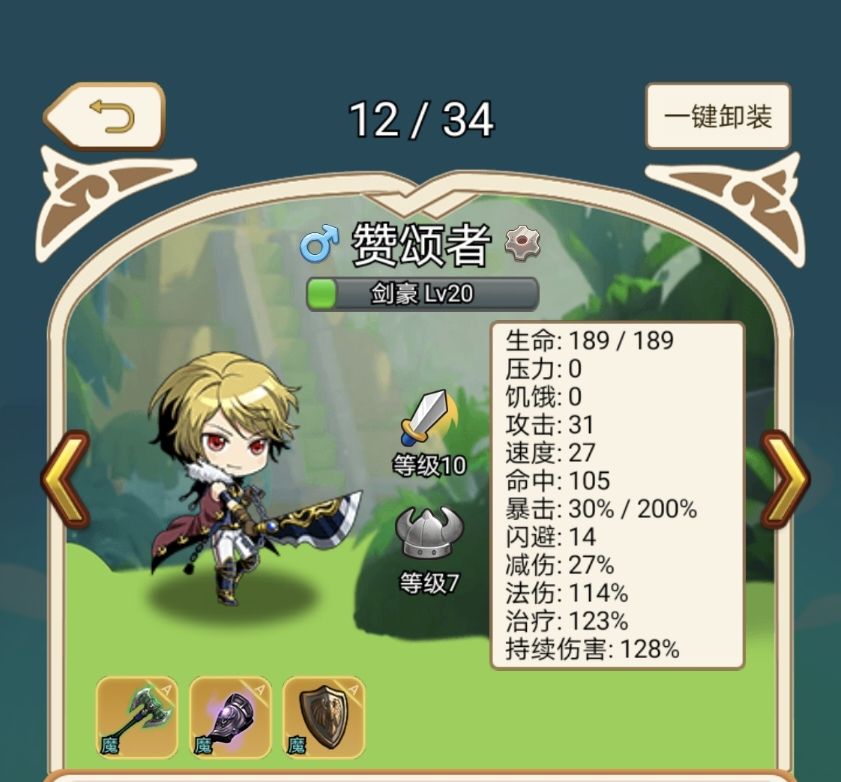 特质:钢铁之躯、肥胖、免疫体、嘲讽、驯兽师、学识渊博、状态流、灵活、冷静(不是召唤流勇者可以换野性之力、灵活换练体狂魔)