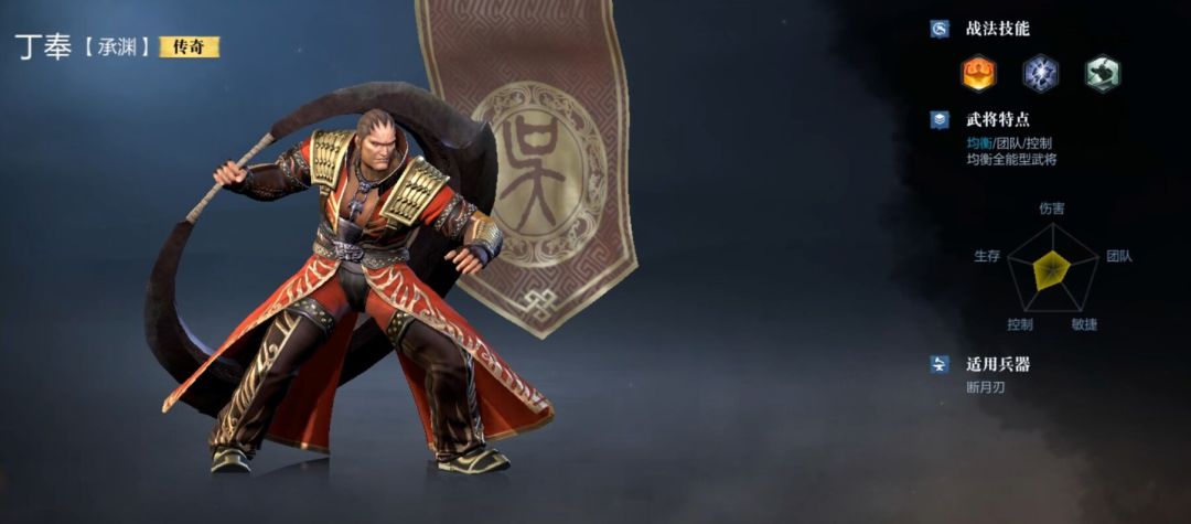 丁奉是一位大开大合的近战武将,携带的断月刃兵器十分霸气,在战场上更是能化作旋风,对敌人造成接连不断的打击。