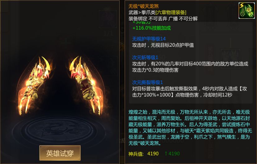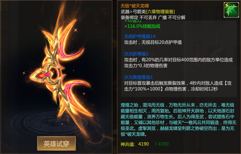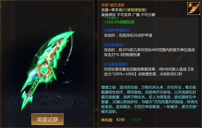 获取方式:仙术师可以在强化界面中合成无极系列武器
