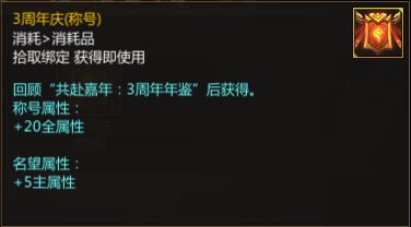 获取方式:共赴嘉年—3周年年鉴,仙术师在周年庆期间登录并观看完年鉴后即可免费领取3周年庆专属称号