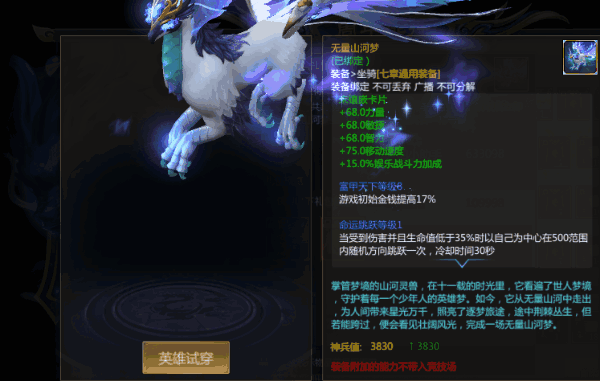 获取方式:共赴嘉年—周年排行,周年排行第一的仙术师可以即可独享周年坐骑——无量山河梦