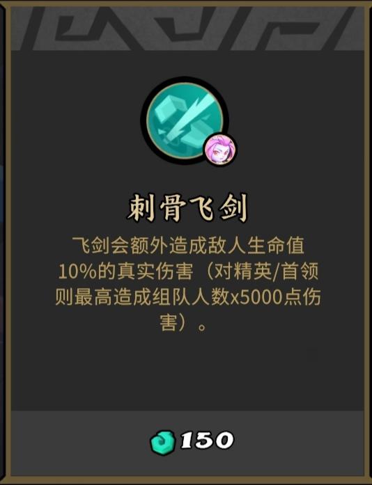 刺骨飞剑前期打boss伤害可观,后期飞花成型后打小怪一个次要技能秒杀,属于伤害保底型灵佑。