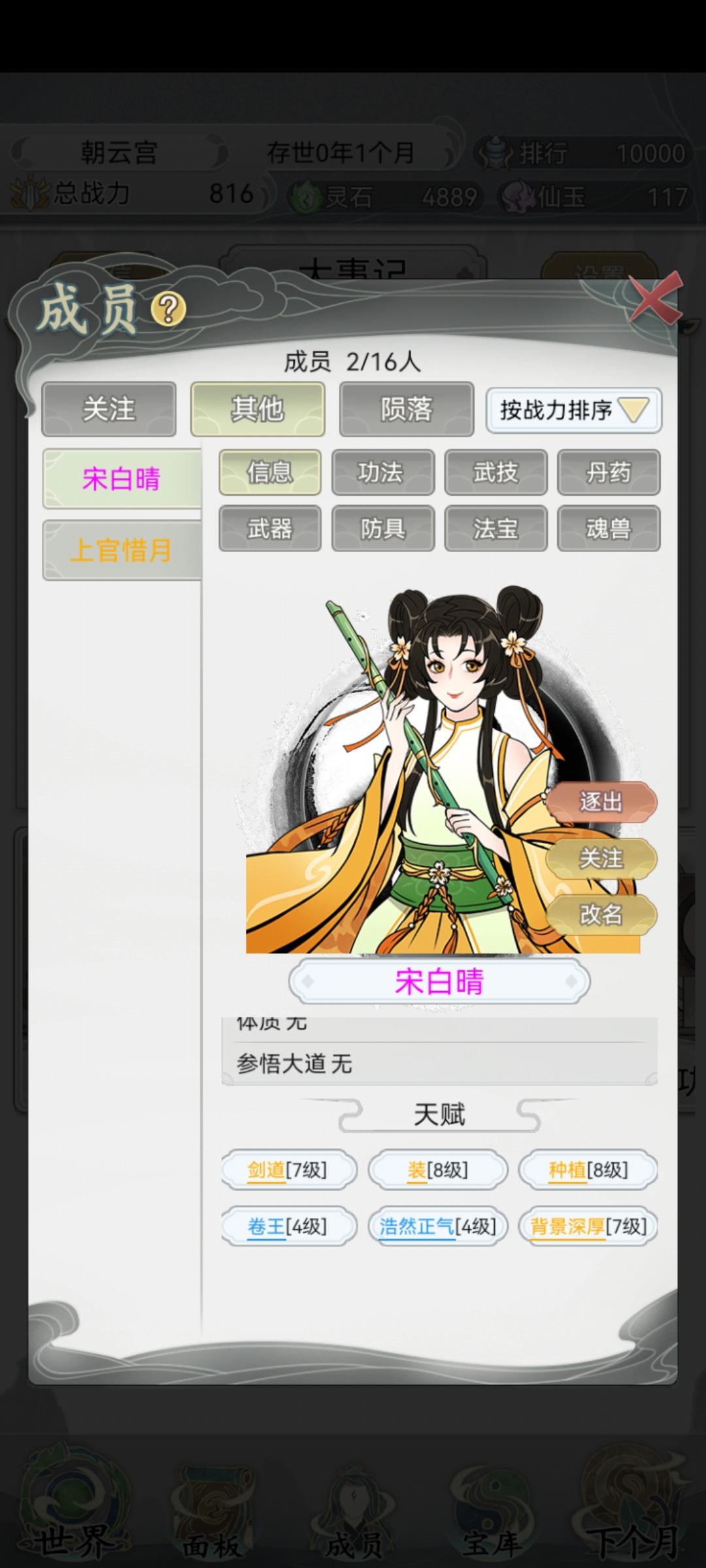 看看开局系统给的哼哈二将,都有装+浩然正气。那就留到9月第一次除魔再驱逐出门吧。