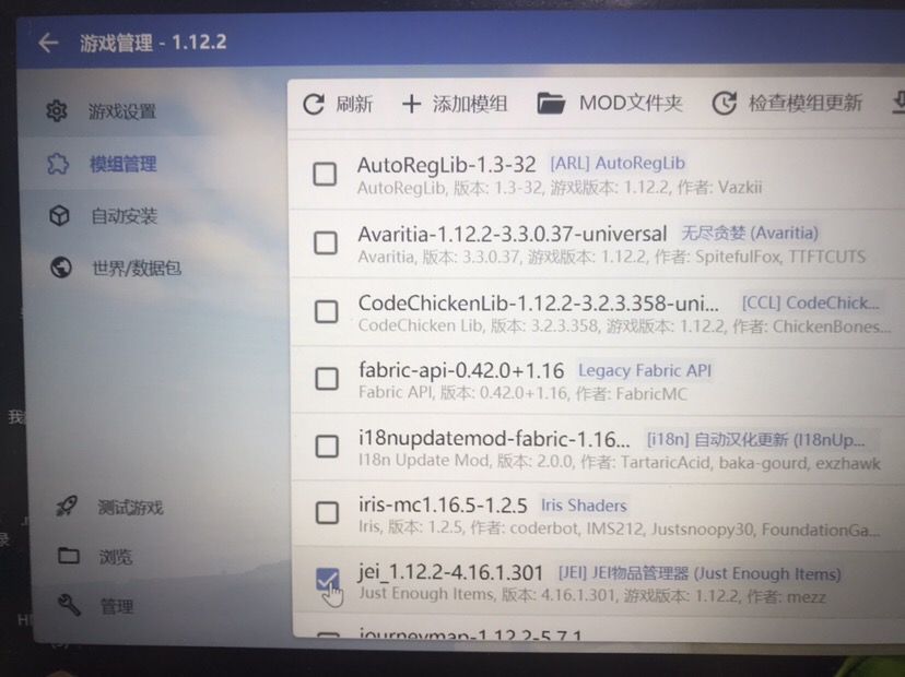 1.12.2模组管理中启用一个
