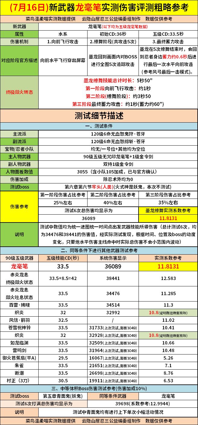 【7.16最新山居武器评测站】新武器龙毫笔实测伤害评测粗略参考(仅供参考)