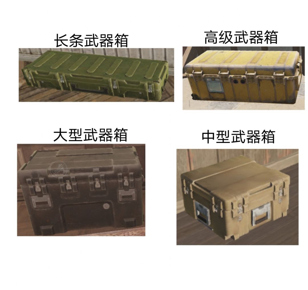 长条武器箱:会刷新枪械配件、中低质量子弹、医疗用品、耳机、军事用品…