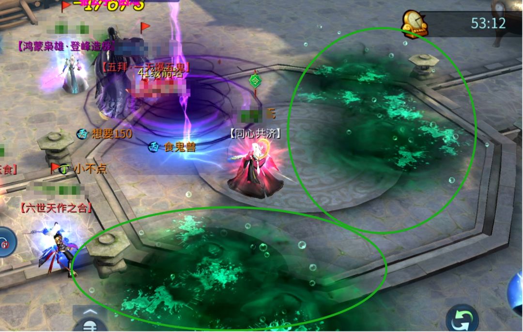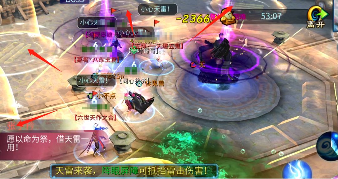 天雷阵:头顶有数字的玩家,进入阵眼屏障中抵御天雷伤害