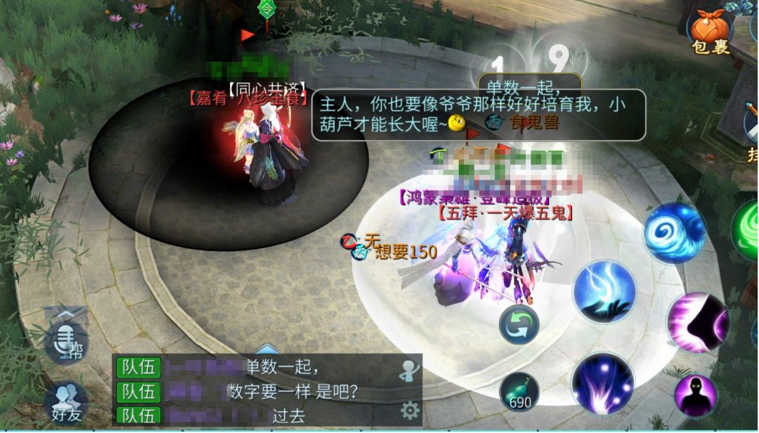 每名玩家头顶都会有一个数字,偶数为阴数,要进入黑圈,奇数为阳数,要进入白圈。当阴阳两个法阵里面的数字之和相等时,即可破阵。