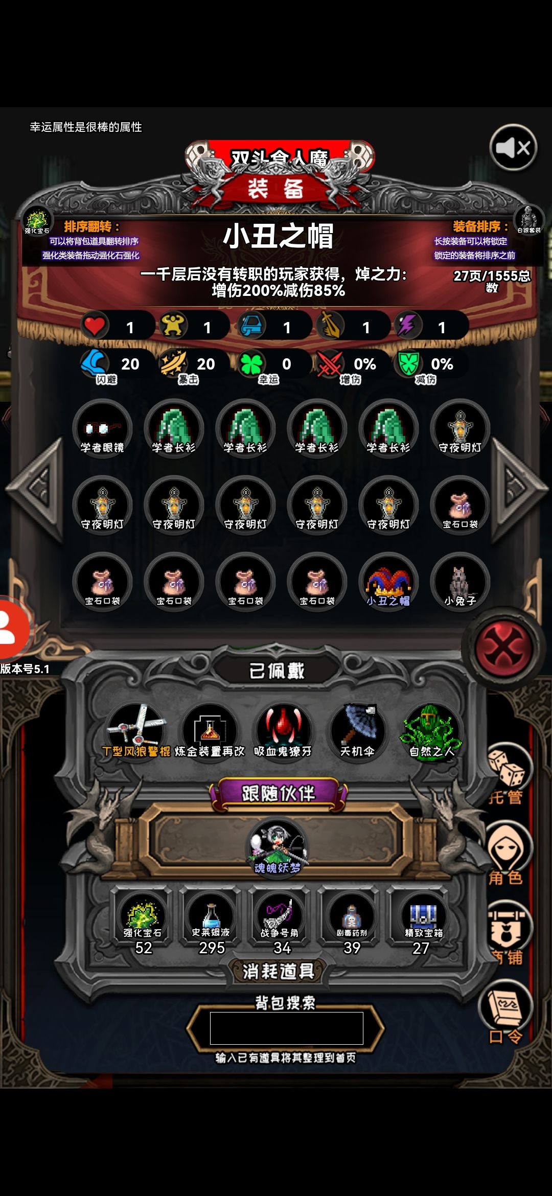 等我们狗到了一千层,小丑之帽这个装备嘎嘎香可以让我们继续狗住
