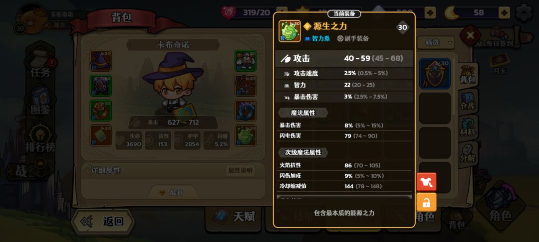 先把智力点满,因为智力可以使智力武器和技能的伤害增加,额外增加能量上限和攻击力,这些都与咱们的输出相关;至于敏捷是为了加攻速,有利于天赋闪电之力的叠加,同时在无法保证能一直续航的情况下攻速非常重要,智力类武器平a前摇非常长,大概1s平a一次。