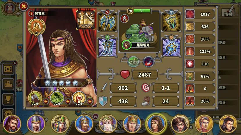 2. 主上路打法:上路主力一路打穿,摧毁城堡,然后占领下路侧门红圈。下路队伍开局后来中路消灭黑亚瑟和雅典娜。右下红圈大狼占。——这个打法其实是比较优的路线。但我在尝试多次后发现回合数仍然不够,主要原因在于上路主力摧毁城堡后还得去消灭下路宙斯,摧毁城堡后得留人守城堡红圈,而宙斯附近兵力较多,人派少了或者状态不好,很容易翻车。上路队伍和中路队伍任务分配不均,上路压力偏大。