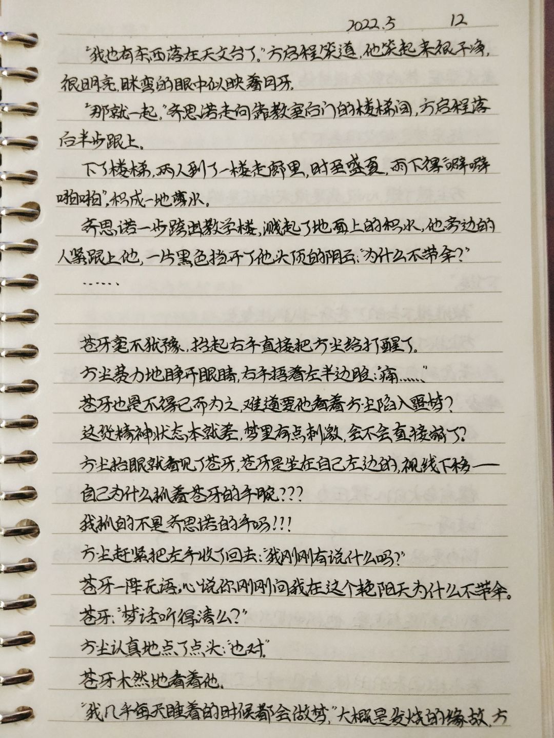 前桌的位置离后门更近,明明只要转身经过方启程的座位,就能从后门出教室,他却走向前门。