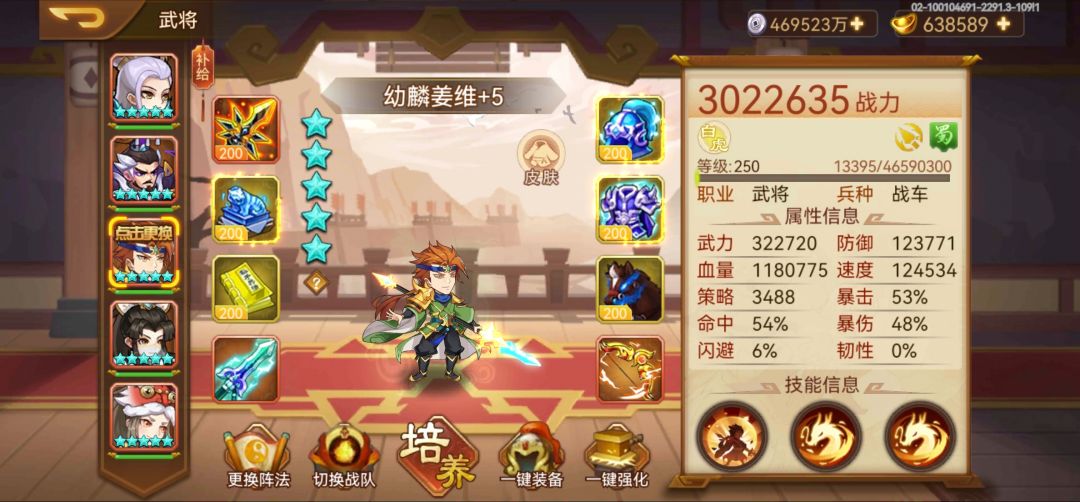 (因为专属速度问题,步妹姜维装备做了微调,但武力保持基本一致)