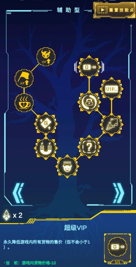 然后把辅助型右边的两个VIP升级,这样方便第一关就白嫖到核心武器。