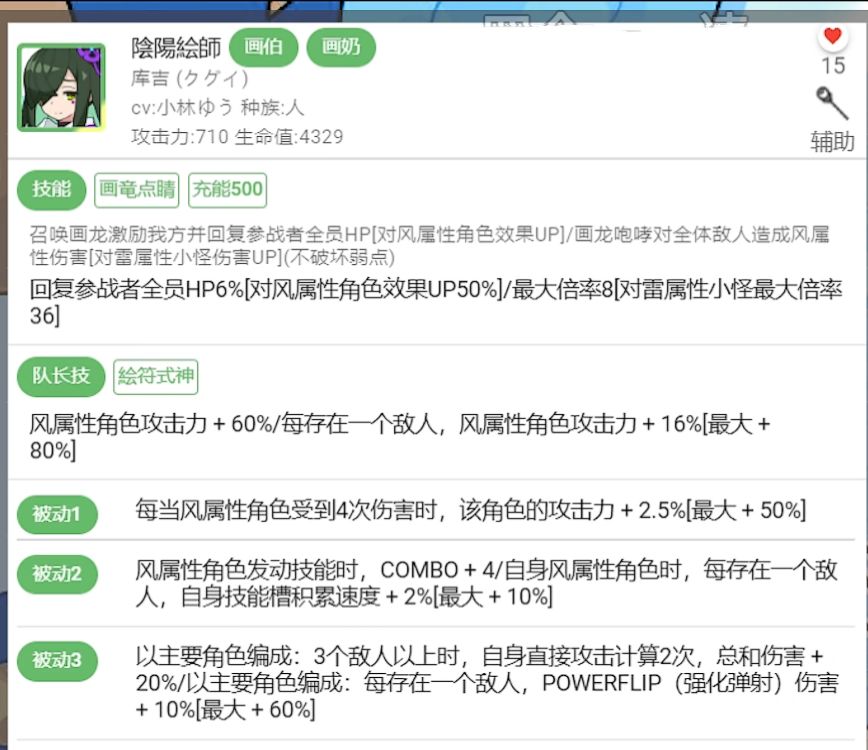 活动赠送4星角色画伯是风属性的奶妈