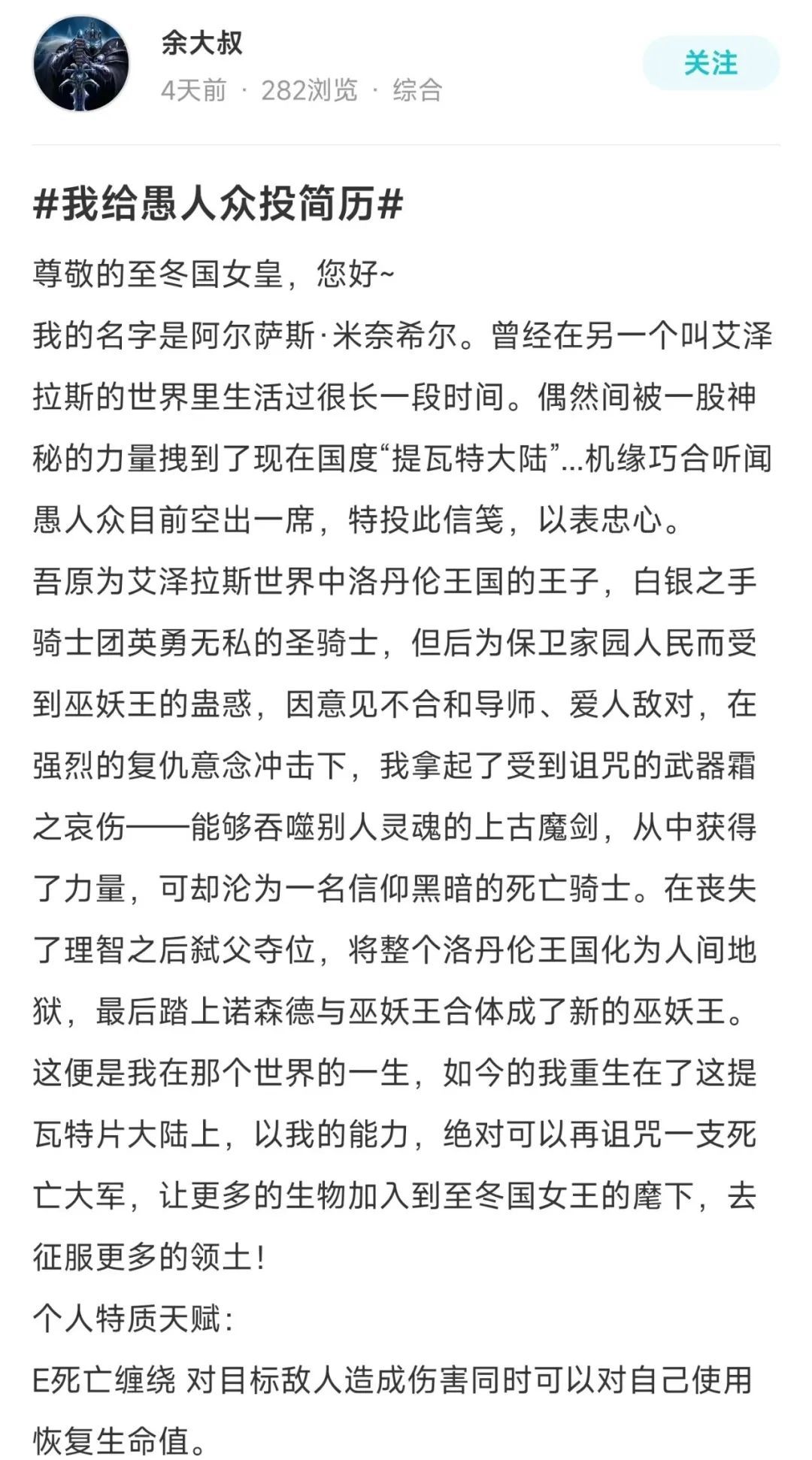 落魄了,家人们!堂堂巫妖王也沦落到要给别人投简历了!但是他不是一个人,同样从其他世界穿越而来的还有很多……