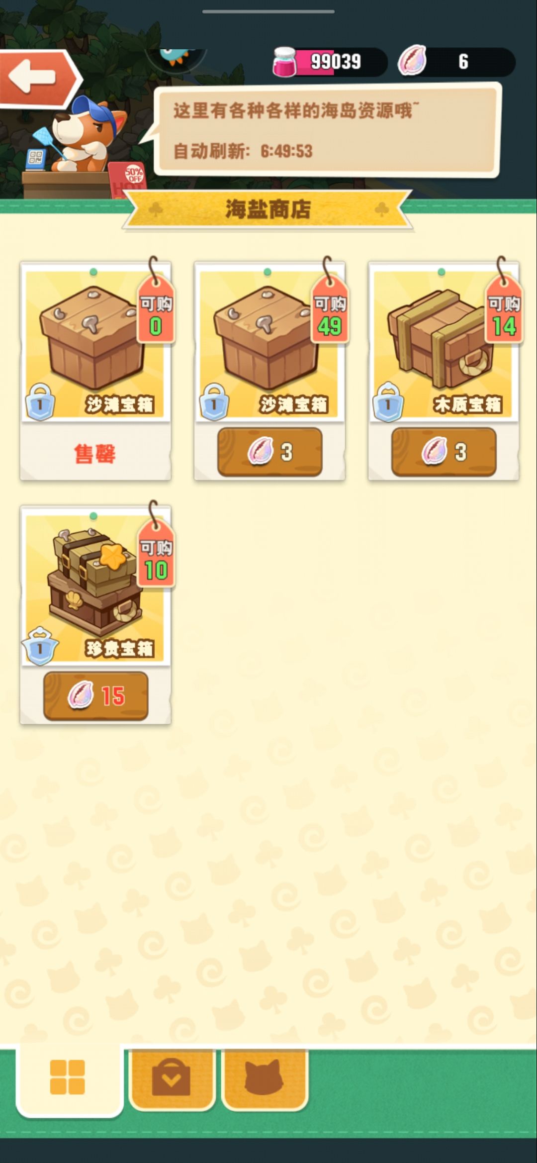 这里的沙滩宝箱跟木制宝箱都是3贝壳,贝壳有限,所以我们来算算购买哪个划算。