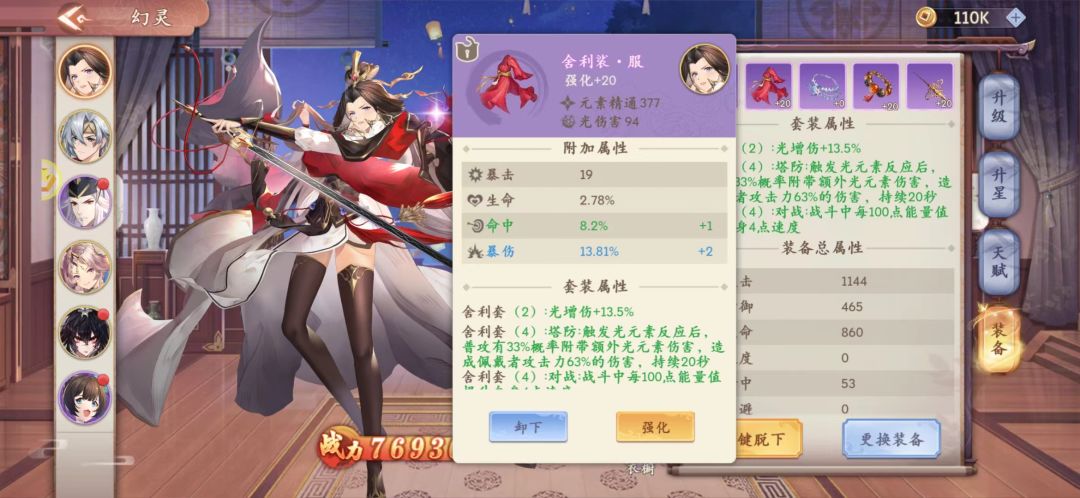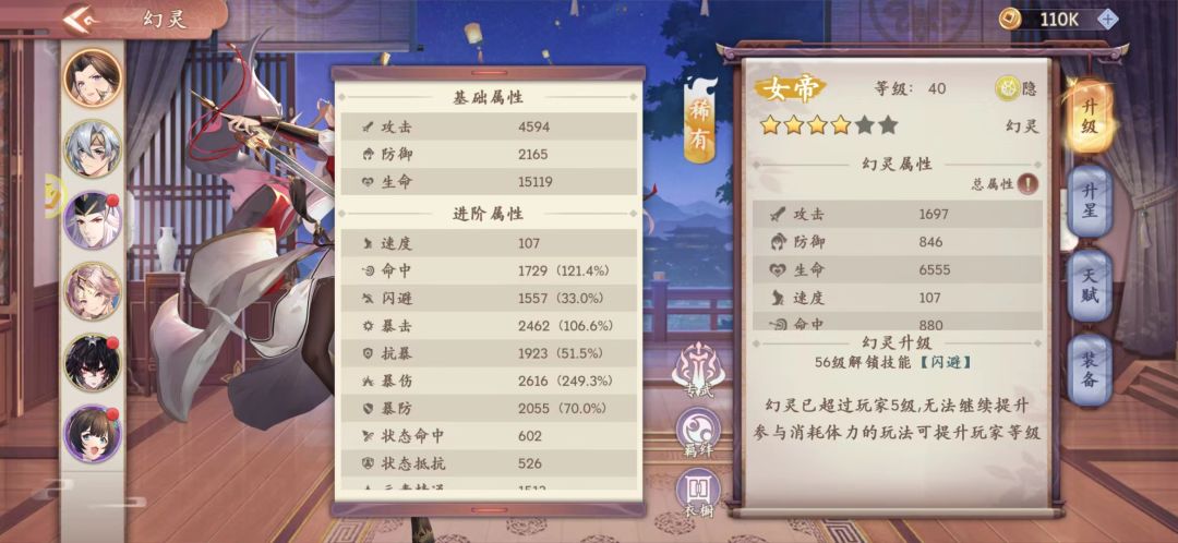 4星女帝装备和属性: