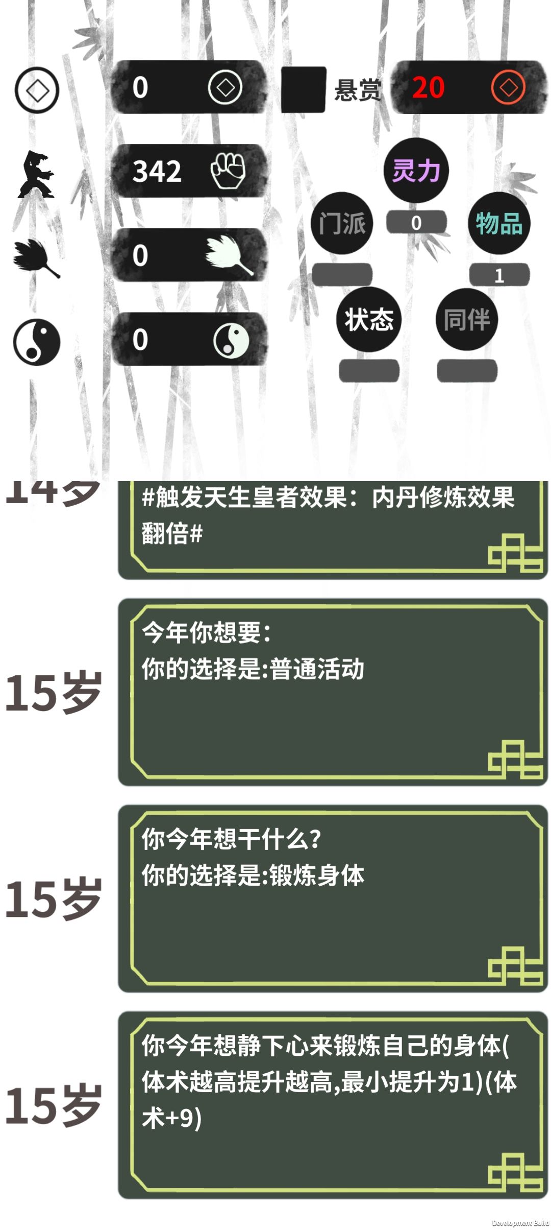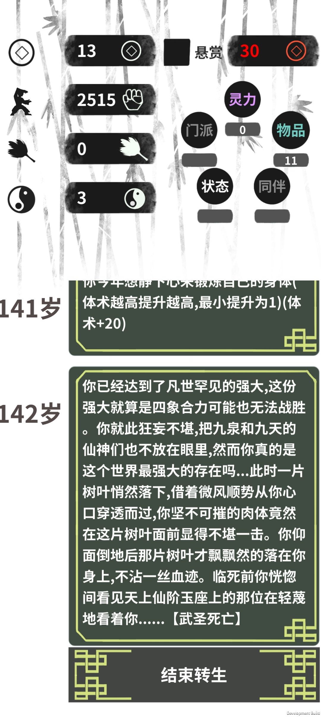 基础思路:天生皇者出生自带100体质+200灵力,通过武圣将灵力转为体质,一路锻炼身体把体质加到2500即可完成武圣死亡