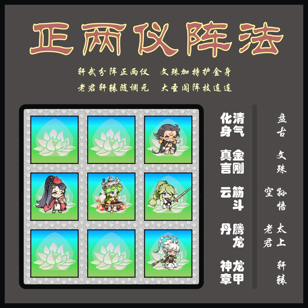该阵只是举一个例子,来说下并非要死板的去规定限制仙人的选择,这个阵就是在正两仪阵法上将文殊换成了纣王,结果就是阵法的效果就发生了转变。由于只调换了一个纣王,所以我就说下纣王的用途。