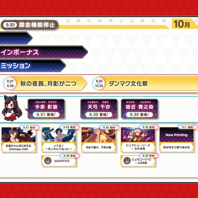 弹幕神乐将在2022.10.28关服,以下为剩下几个月的活动内容。