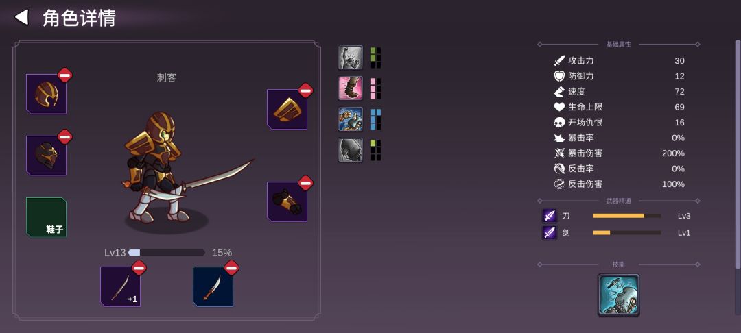 刺客主要打控制,主手刀选金环,副手刀赤练,防具要眩晕套装,加点速度大于血量大于攻击