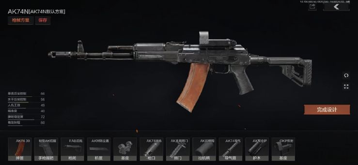 如图这把枪是AK74N,也是暗区中所有人接触的第一把枪,也就是新手教程中我们手上所用的枪,能被用在新手教程中,这把枪的可操控性无疑是十分优秀的,那么就由这把枪为基准,让我来给大家介绍一下枪械属性以及他们所代表的含义。