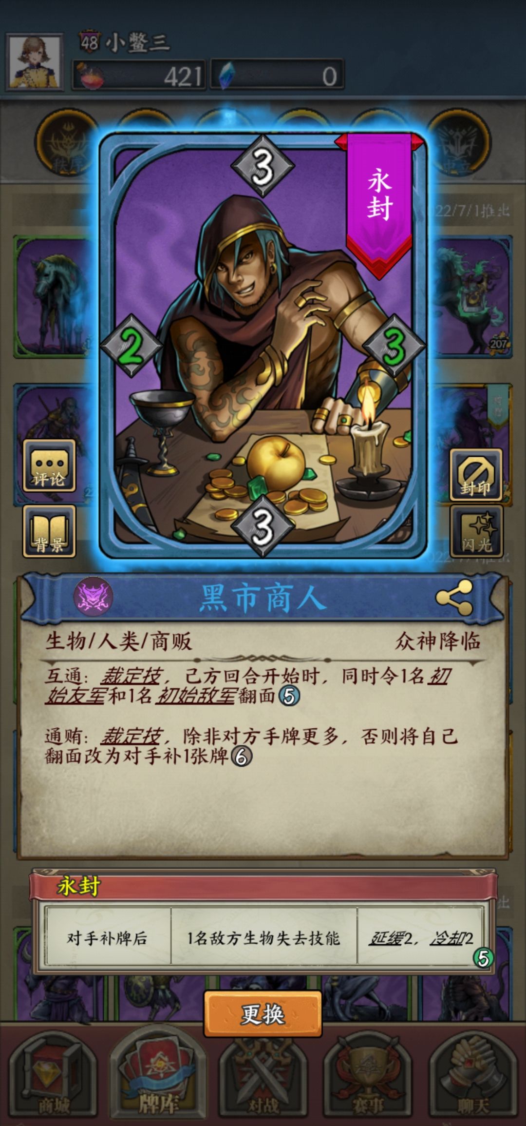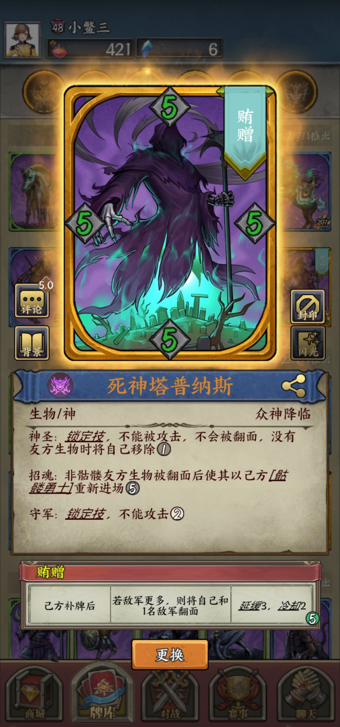附魔贿增也是利用抗性,但是实战不佳,往往是我多敌少,还在努力附魔永封沉默愚惑一类技能强容错。自带技能可以把翻过来的卡牌保住,再次被翻后变成损坏骷髅兵,至少保一个空地。