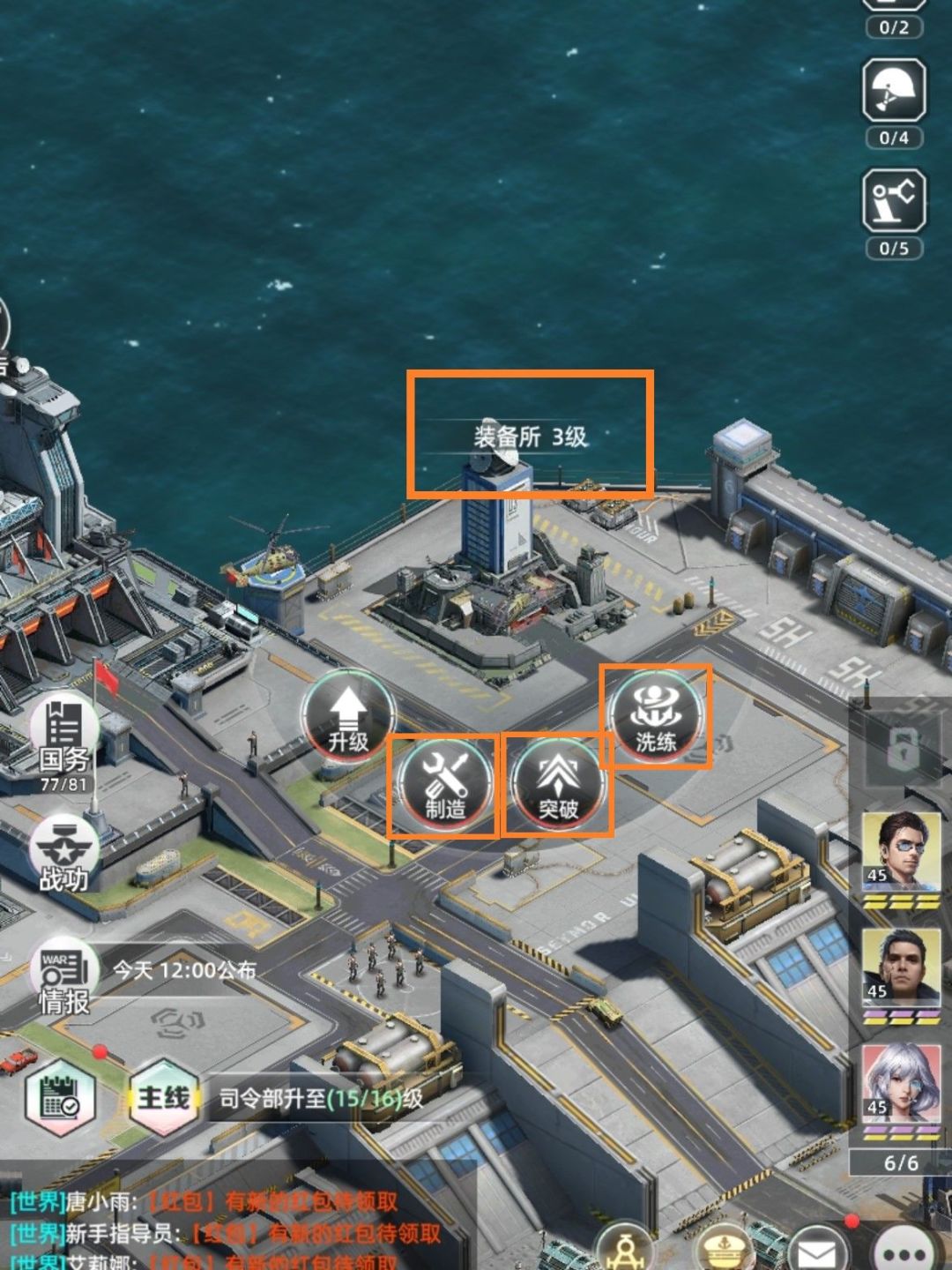 一、装备所制作、提升装备来提升指挥官的战力值