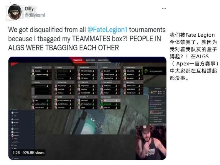 Apex赛事主办方将蹲起嘲讽的选手禁赛,激起玩家社区不满