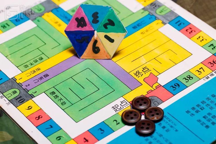 骰子和棋子需要按照棋盘背后那一页的说明自行DIY,在这也还原出了当年自己玩沙罗曼蛇棋的场景:用硬纸片和牙签做的骰子,拿家中的旧纽扣当棋子。值得一提的是,五本书附带的游戏棋盘中,只有沙罗曼蛇采用了这种六边形转盘状的骰子。