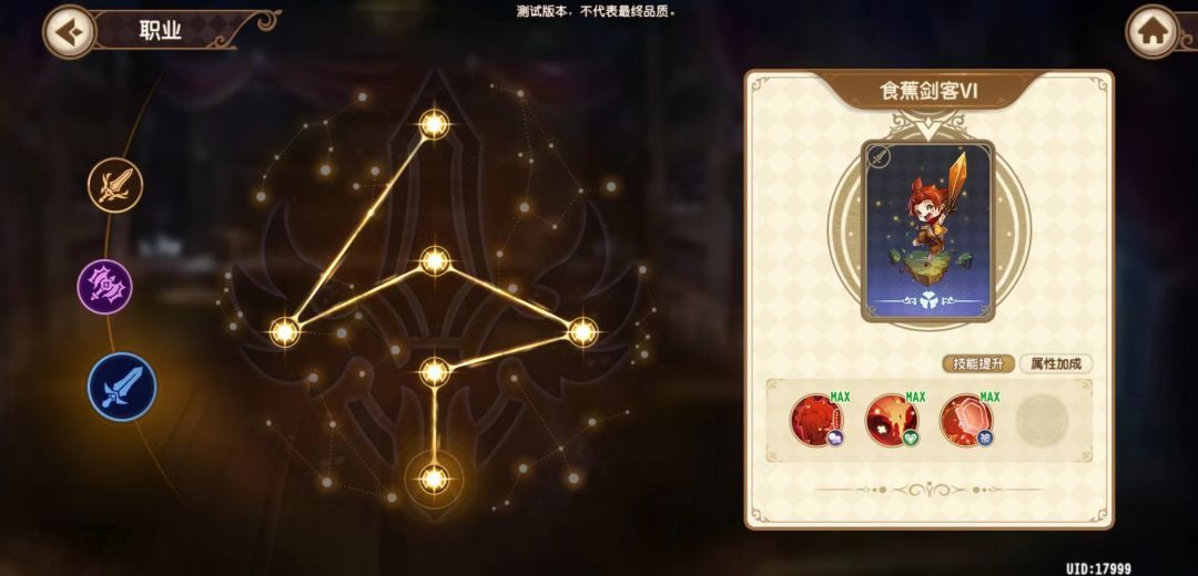 1、晋升(职业)-靠抽卡获得,每个职业有2主动1被动共3个技能,在战斗时可随时切换职业。