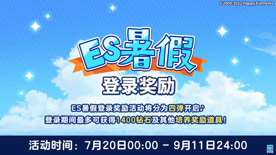 ES暑假登录奖励活动将以事务所篇分为四弹开启。登录期间最多可获得1400钻石及其他培养奖励道具!