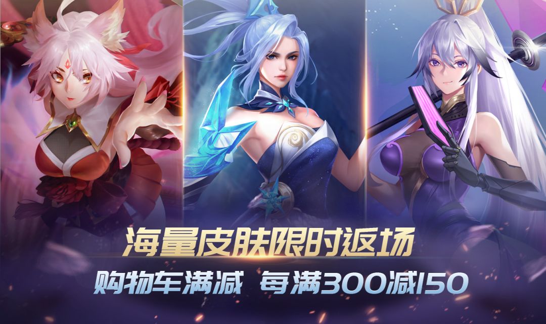 6、 购物车满减:7.21-7.26,海量皮肤限时返场,购物车每满50-18,满100-38,满200-80,满300-150。