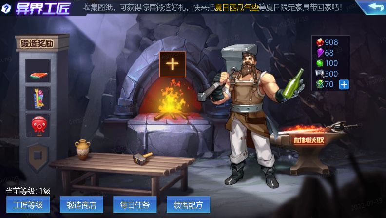 2、工匠等级:在收取锻造奖励时可获得锻造经验值,当锻造经验值达到升级经验后可提升工匠等级,提升工匠等级可解锁不同奖励与特权