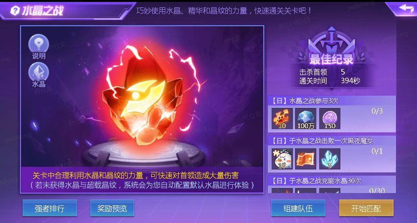 水晶之战来袭,善用水晶、精华、晶纹的力量,组队争夺最快通关速度!