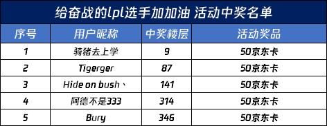给LPL选手加油活动现已开奖,以下是中奖名单~