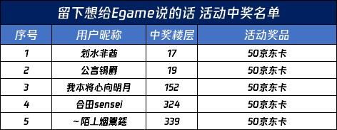 留下给Egame想说的话活动现已开奖,以下是中奖名单~