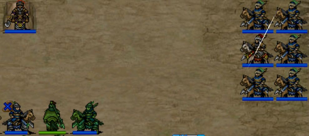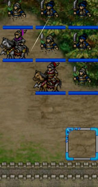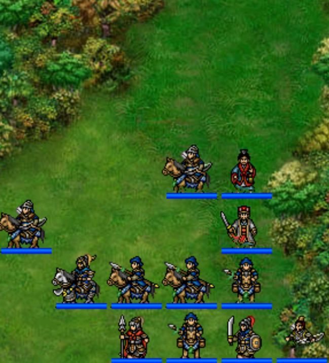 事件2:我军接近浅滩/敌军第三回合后,曹仁率领一系列店装将领在右上方出现。若吕布位于浅滩,则吕布移动至(22,12),张辽移动至(24,5)并增防敏。