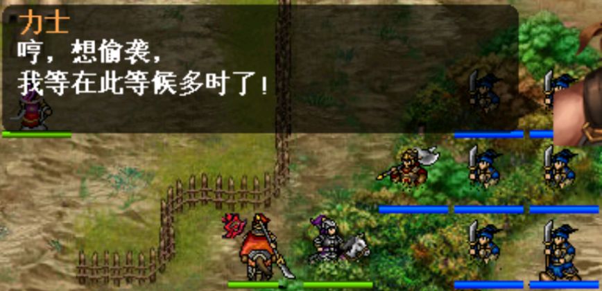 事件2:进入白绕旁的树林小道时,敌军回合会有1力士率领6武斗兵出现。