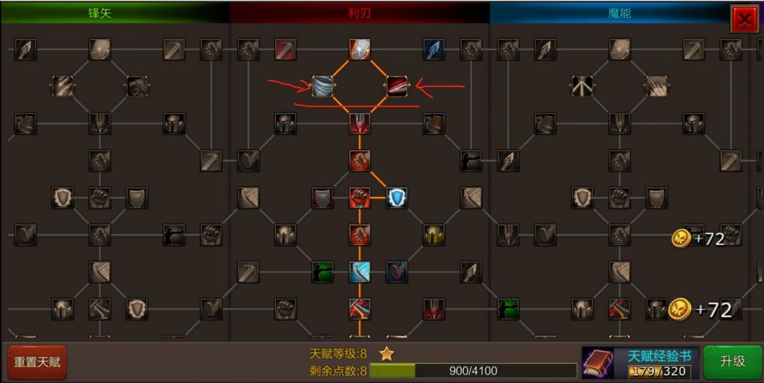 后面其实跟战士是一模一样的。歪过去点出弓手新二阶穿刺射击(技能武器元素,被动5武器元素),顺便特质也摸掉。蛮力打击和穿刺射击你可以二选一。