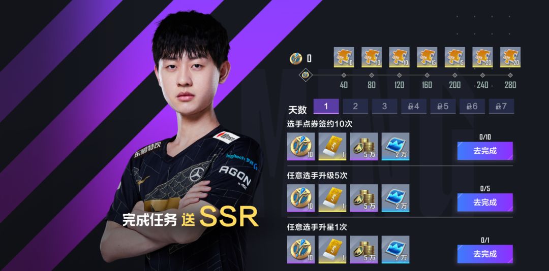 突破生涯里程碑,即可获得1名强力SSR( TheShy、 369、Doinb、Scout任选其一);完成宝典任务也能获得1名SSR中单(Rookie、knight、Angel 、Doinb、Scout任选其一)。